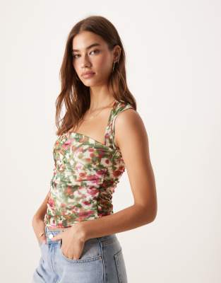 Abercrombie & Fitch – Blommig, ärmlös topp med fyrkantig ringning och rysch