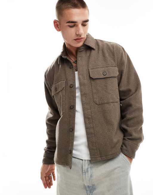 Abercrombie & Fitch – Brun overshirt i dobbyvävd flanell