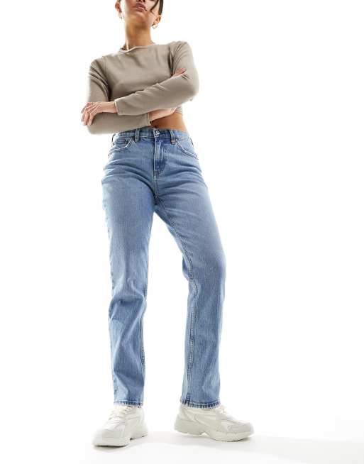 Abercrombie & Fitch – Curve – Love – Mellanblå raka jeans i 90-talsstil med medelhög midja