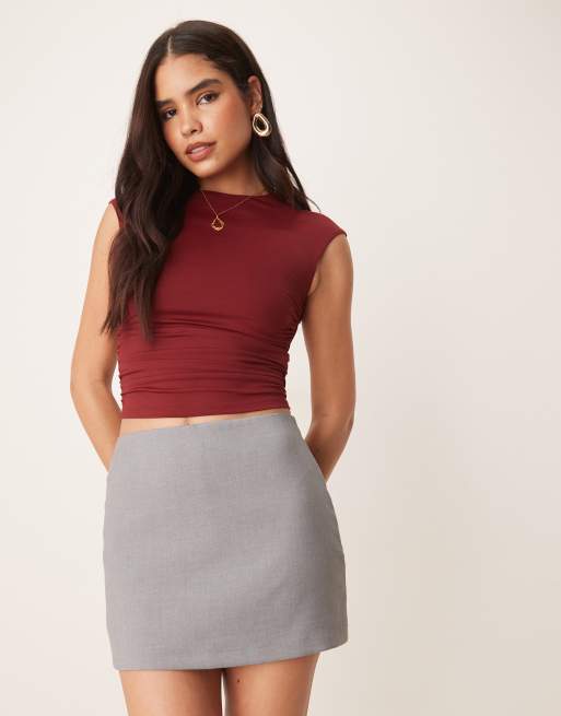Abercrombie & Fitch – Grå skort i minilängd med extra hög midja