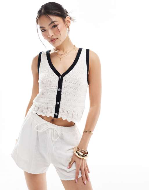 Abercrombie & Fitch – Gräddvitt och svart, virkat linne