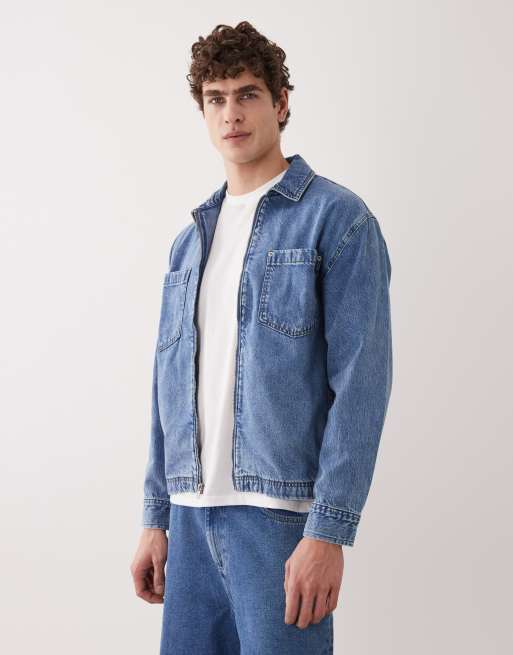 Abercrombie & Fitch – Indigoblå jeansjacka i arbetsstil med dragkedja