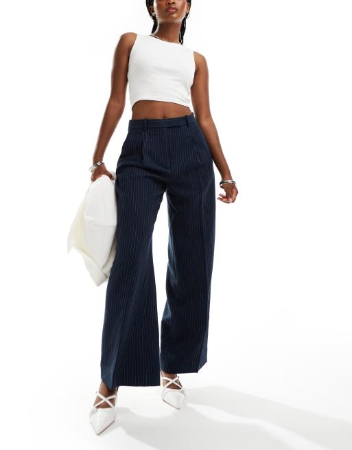 Abercrombie & Fitch – Marinblå figursydda byxor med extra vida ben och kritstrecksränder, del av set
