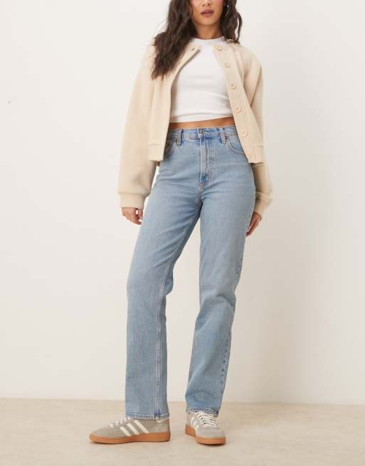 Abercrombie & Fitch – Mellanblå, tvättade, raka jeans med medelhög midja i 90-talsstil