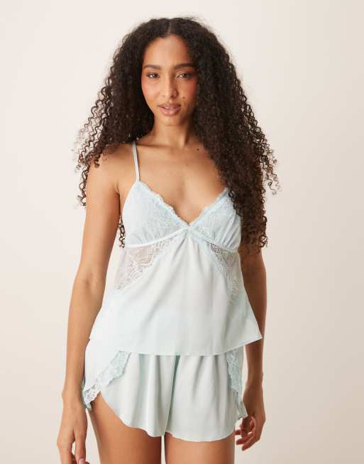 Abercrombie & Fitch – Mintblå pyjamas i satin med spetskanter