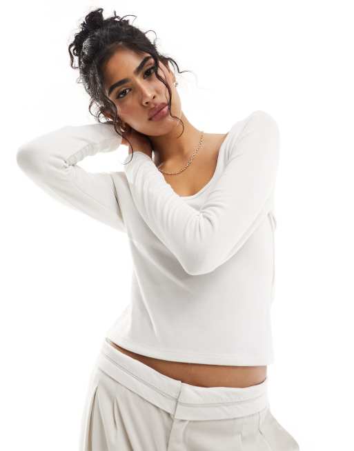 Abercrombie & Fitch – Naturvit, långärmad mystopp i jersey med djup halsringning