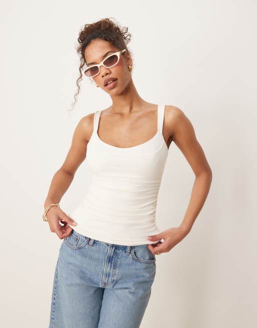 Abercrombie & Fitch – Naturvit topp med hjärtformad ringning och kontrastdetalj
