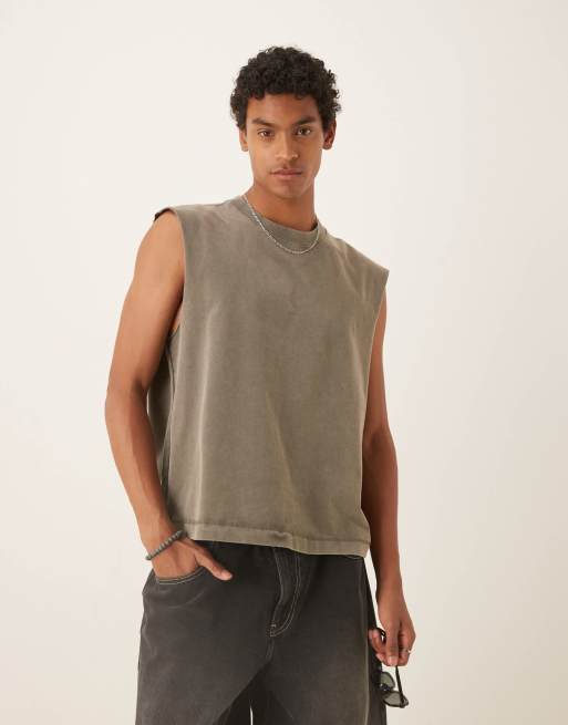 Abercrombie & Fitch – Premium – Grön, tvättad, kort t-shirt i kraftigt material
