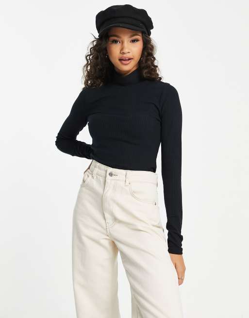 Abercrombie & Fitch – Svart, långärmad topp med hög krage
