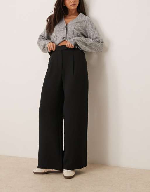 Abercrombie & Fitch – Svarta, plisserade byxor med supervida ben och hög midja