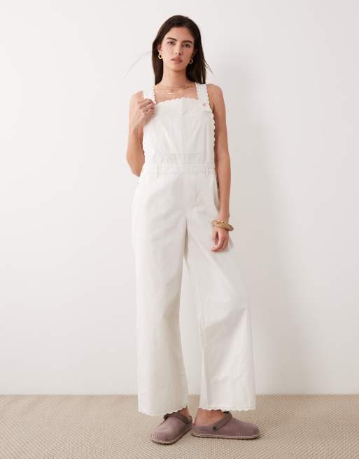 Abercrombie & Fitch – Vit jumpsuit i overallmodell med spetskant