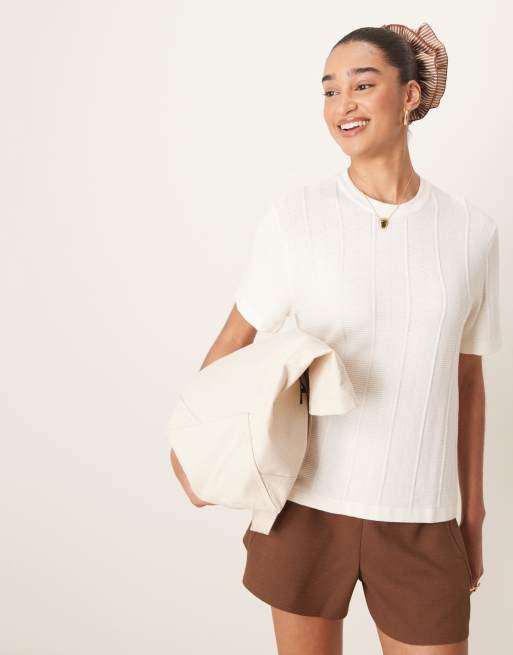 Abercrombie & Fitch – Vit, ribbad t-shirt med sömmar