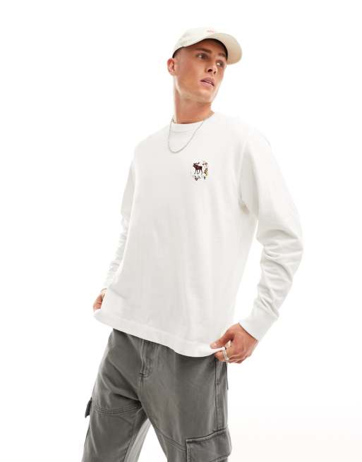 Abercrombie & Fitch – Vit t-shirt i oversize med ikonlogga och långa ärmar