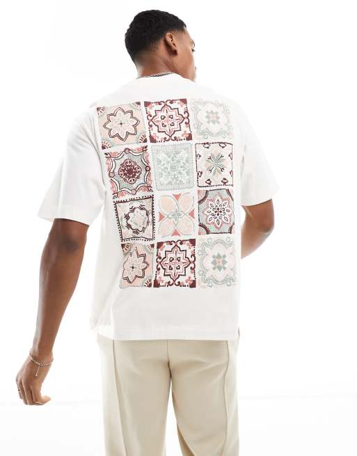Abercrombie & Fitch – Vit t-shirt med handbroderad rygg, ficka och logga