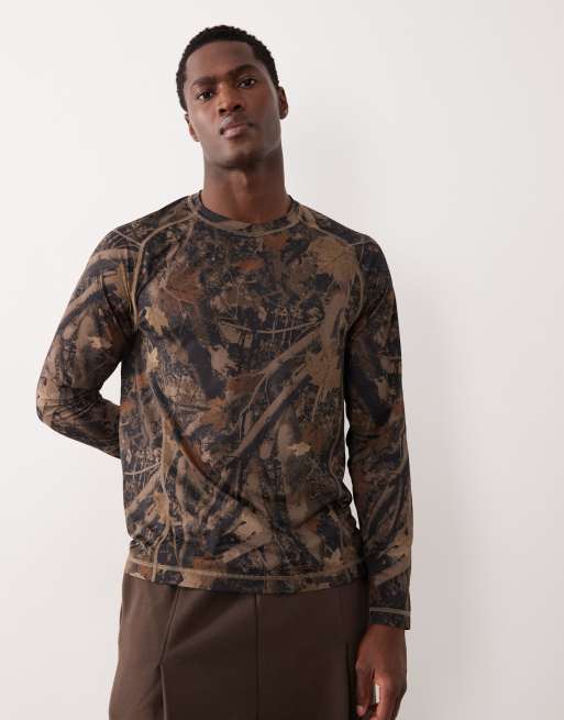 Abercrombie & Fitch – YPB – Kamouflagemönstrad topp med långa ärmar för träning