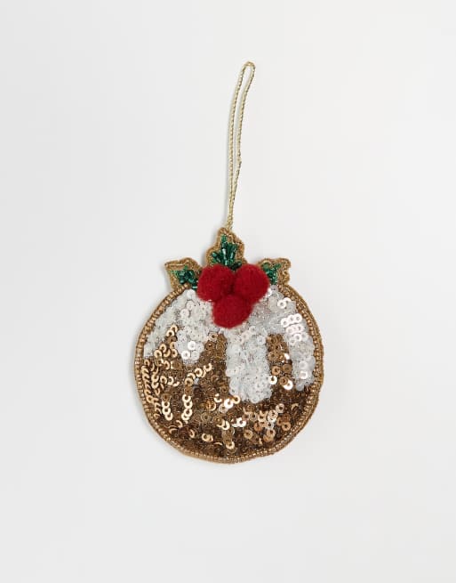 Accessorize – Brun, utsmyckad julgransdekoration formad som en julpudding