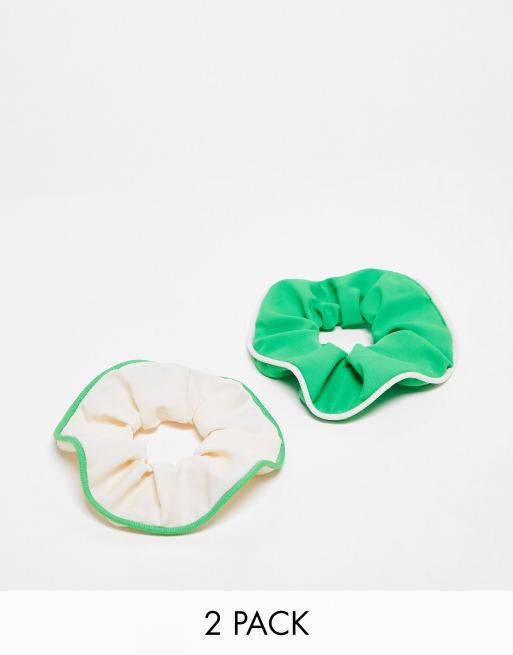 Accessorize – Gröna och vita hårsnoddar med kant, 2-pack