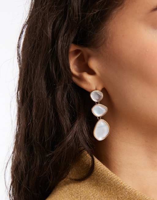 Accessorize – Guldfärgade, hängande örhängen med tre månstenar