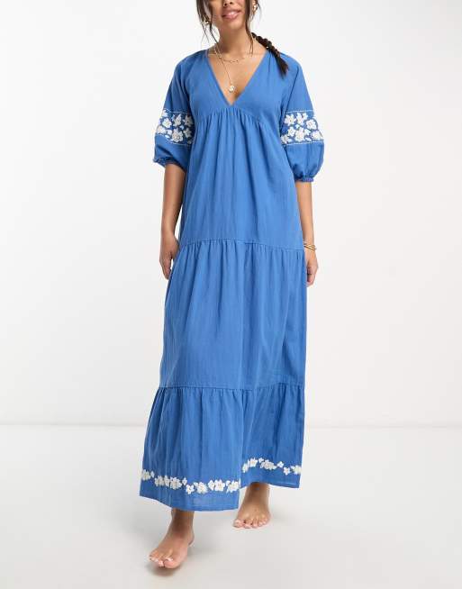 Accessorize – Koboltblå sommarklänning för stranden i maxilängd med broderi
