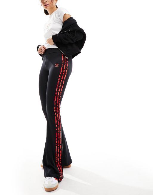 adidas Originals – Leopard Luxe – Svarta leggings med tre röda, leopardmönstrade ränder