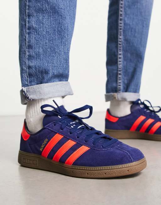 adidas Originals – München – Blå och röda sneakers med gummisula