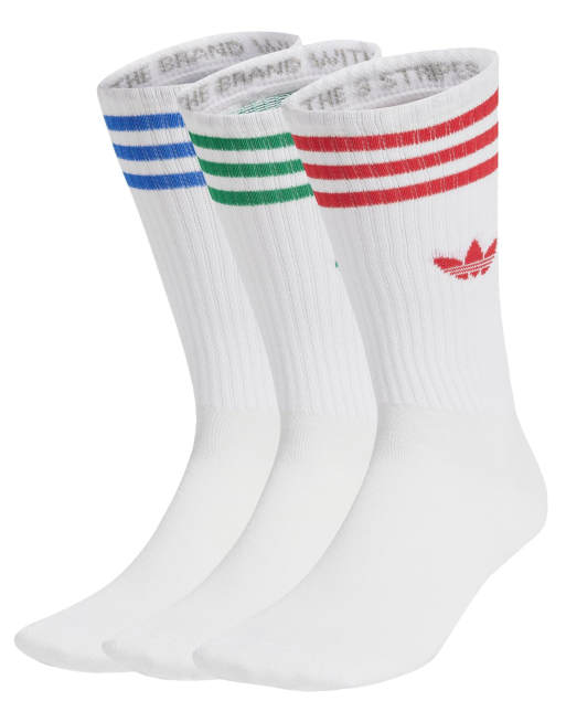 adidas Originals – Solid – Vita, röda, gröna och blå sportstrumpor, 3-pack