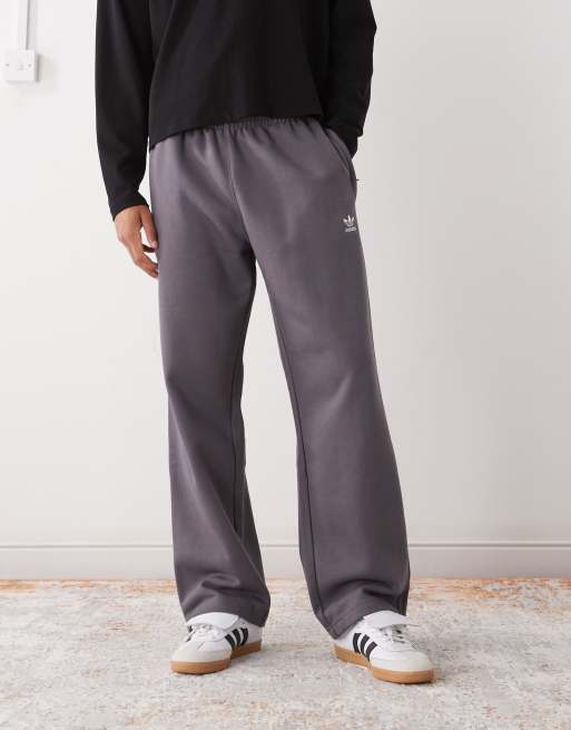 adidas Originals – Trefoil Essentials – Grå byxor med öppen fåll och treklöver