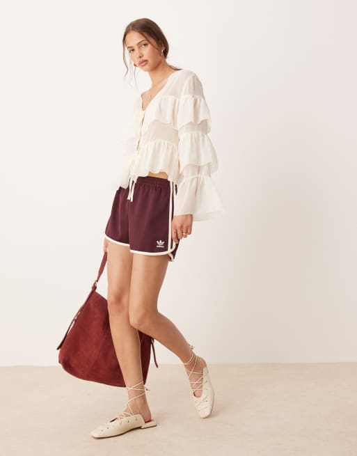 adidas Originals – Vinröda löparshorts med tre ränder