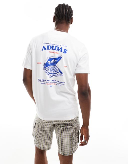 adidas Originals – Vit t-shirt med Pizza-tryck