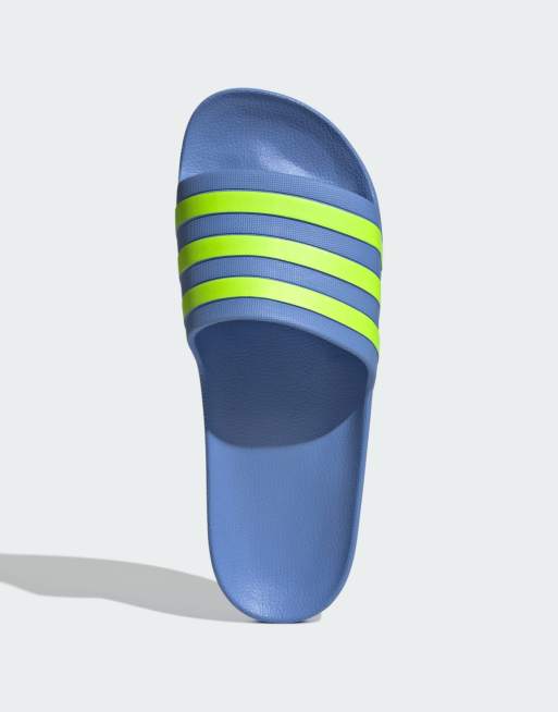 adidas Performance – Adilette Aqua – Blå och citrongula tofflor