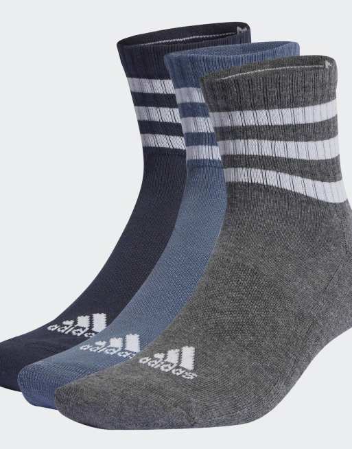 adidas performance – Bläckblå, blå och grå, låga strumpor med dämpning och tre ränder, 3-pack