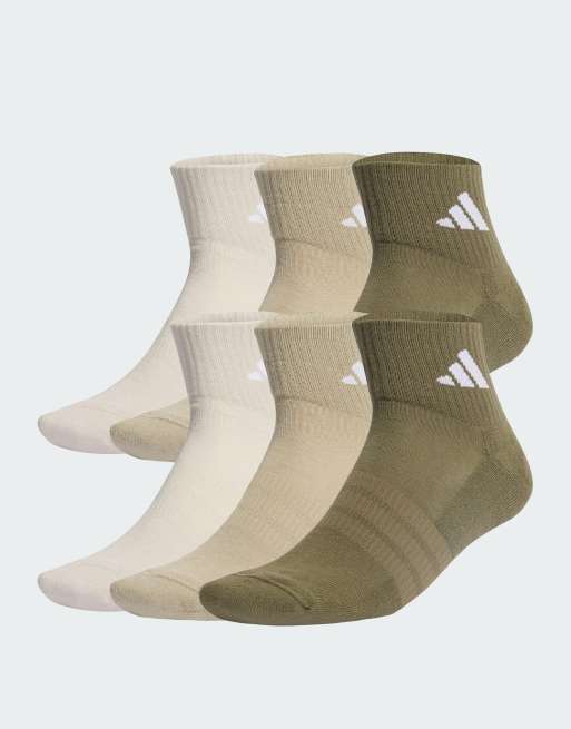 adidas Performance – Cushioned Essentials – 6 – Olivgröna och cargofärgade ankelstrumpor, -pack