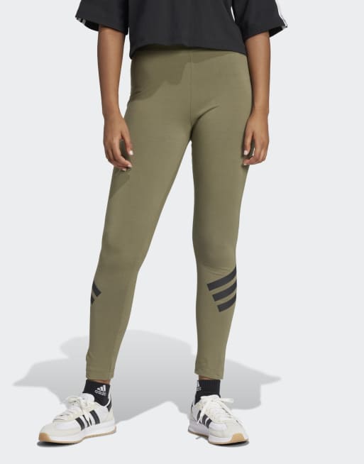 adidas Performance – Future Icons – Olivgröna leggings med 3 ränder