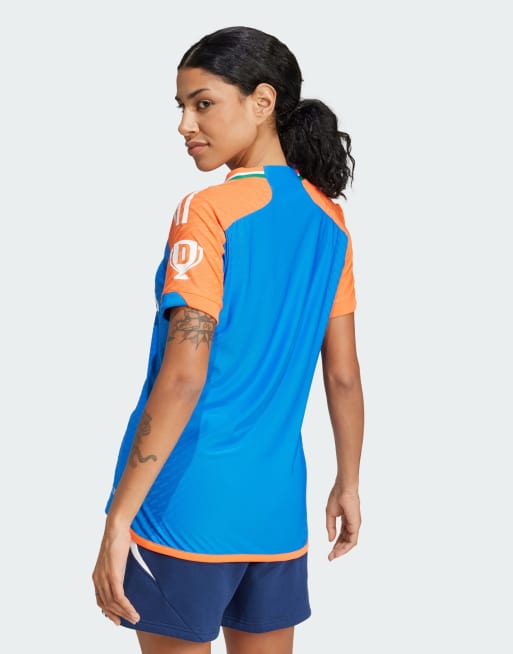 adidas Performance – India Cricket t20i – Mörkblå och orange t-shirt i jersey