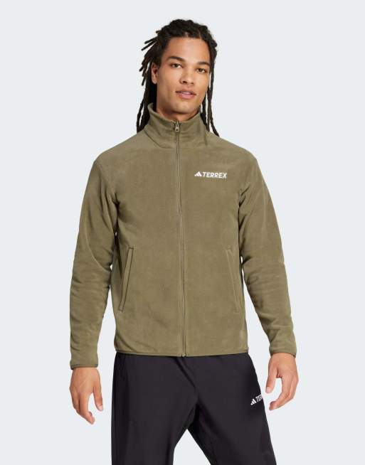 adidas Performance – Multi Essentials – Olivgrön fleecejacka med hel dragkedja