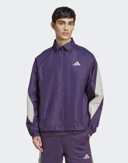 adidas Performance – Stadium – Plommonlila och metallgrå träningsjacka
