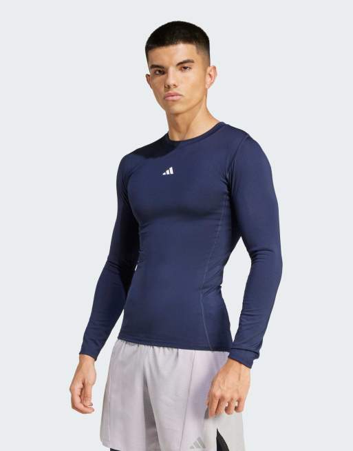 adidas Performance – Techfit – Bläckblå träningströja med kompression och långa ärmar