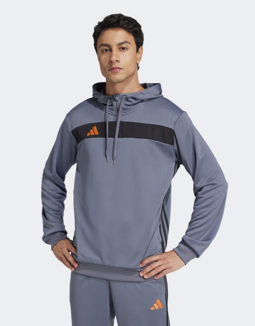 adidas Performance – Tiro 25 Essentials – Grå och orange huvtröja i sweatshirttyg