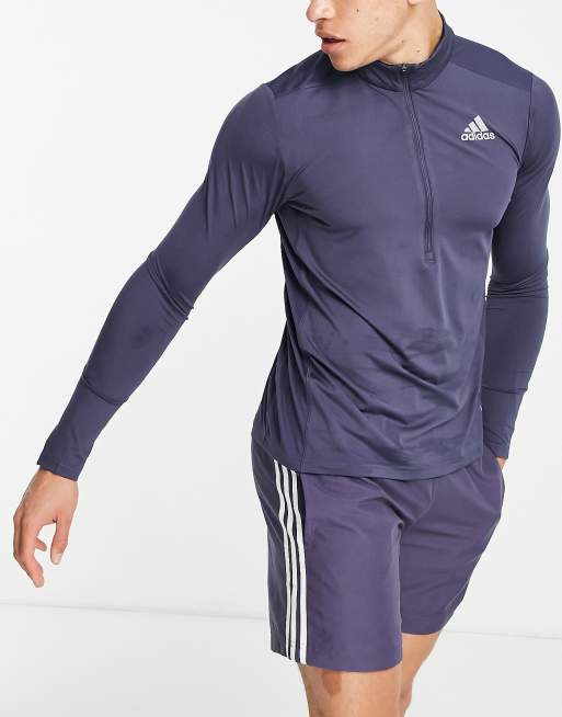 adidas – Running – Own The Run – Marinblå sweatshirt med dragkedja vid halsen