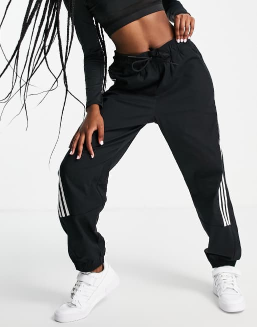 adidas – Sportswear – Svarta vävda träningsbyxor med tre ränder