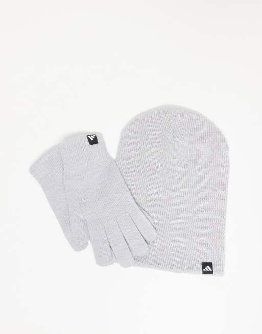 adidas – Training – Grått gåvoset med stickade handskar och mössa