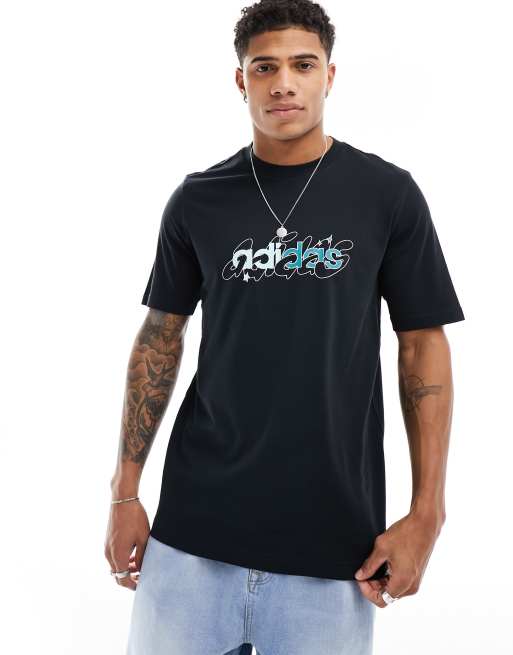adidas – Träning – Svart t-shirt med bubbeltryck