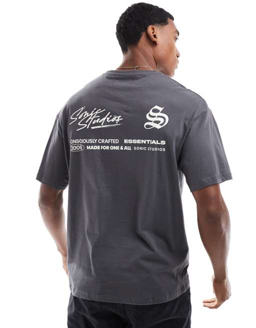 ADPT – Grå t-shirt i oversize med texttryck baktill