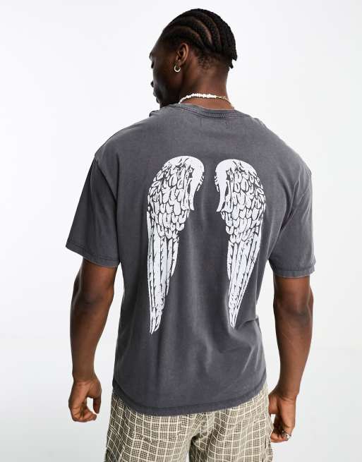 ADPT – Grå, tvättad t-shirt i oversize med vingtryck baktill