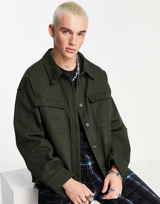 ADPT – Kakigrön overshirt i twill och oversize med boxig passform