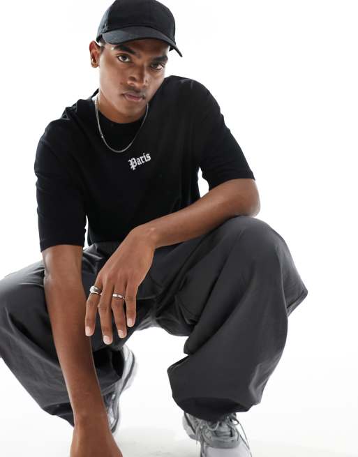 ADPT – Svart t-shirt i oversize med stadsbroderi framtill