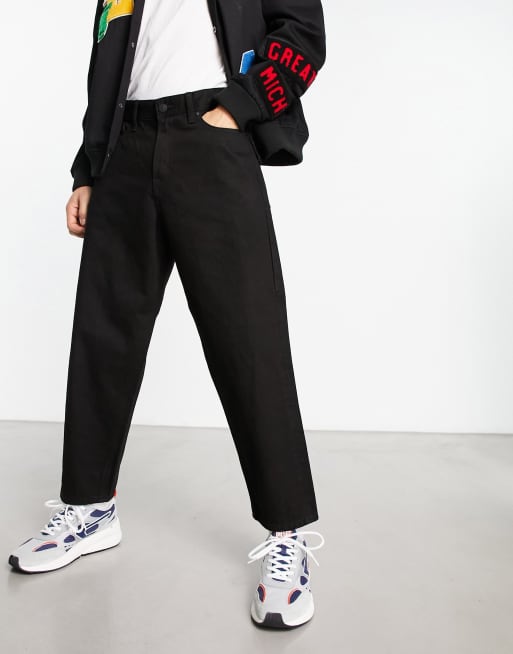 ADPT – Svarta korta jeans med tvättad finish och vida ben