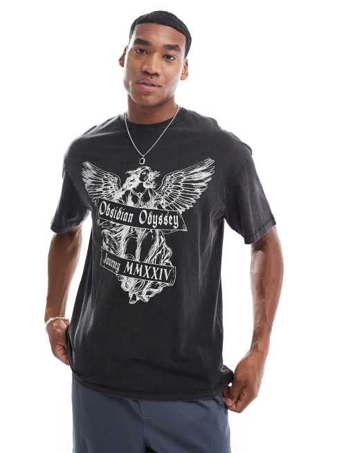 ADPT – Svarttvättad t-shirt i oversize med änglatryck på bröstet
