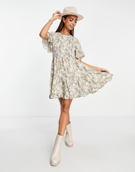 Aeropostale – Beige mönstrad smockklänning