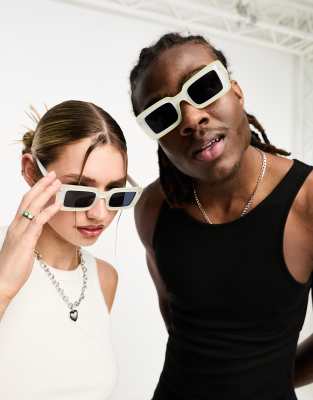 AJ Morgan – Vita, fyrkantiga solglasögon i oversize för festivalen